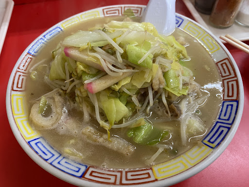 Read more約10年振りお店に。メニューの料金50円upしてますので載せときます。 ちゃんぽん食べました。野菜多め─細もやし 豚バラ ちくわ かまぼこ キャベツ (角天1切れ?)。