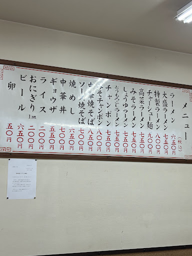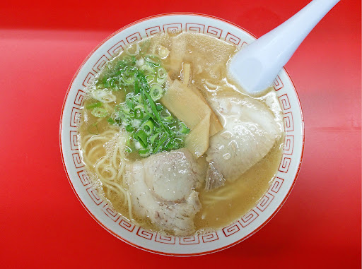 大牟田市上官町、福岡県道3号線沿いにある老舗ラーメン屋です。小さめの店舗で、店内はカウンター席とテーブル席のみ用意されています。駐車場は店裏に2台分用意されているのみです。さて「ラーメン」ですが、塩味と醤油感が先行する、久留米系に近いとんこつスープとなっています。この店の特徴である豚骨臭も適度に感じられますね。麺は中細ストレートでやや柔麺仕上げ、具はしっとり歯応えのあるチャーシュー、シナチク、ネギといった構成の一杯です。かつては、店の周囲にまで漂う豚骨臭が強烈なインパクトを与えていたのですが、やはり現代風にアップデートされたのでしょうね。今では店内外とも臭いは一切気になりません。大盛り対応あり、替え玉制なしとなっています。 かつては上官支店以外にも、本町·寿通りの本店と不知火町·旧大牟田市立病院前の総本店がありましたが、2店舗とも既に閉業しております。こちらの上官支店も老夫婦二人で細々と営業されている印象です。いつまでも元気で頑張って下さいね。因みに閉店した2店舗とも2階には喫茶店が置かれていたのですが、多角営業されていたのでしょ...