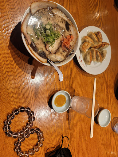 Read more写真はブラックのスープに🐷+🍜=チャーシュー麺。and10個餃子。コッテコテと言うよりかはあっさりのスープでどっちかと言うとまろやかと言うかミルクを思わせる様な豚骨のスープがベース。ブラックの他にはノーマルやレッドもあります。イメージ通りレッドは赤みそなどちょっとspicy系でブラックはニンニク系。好みに応じてオーダーします。しっかり麺の硬さも指定お願い出来ます。麺はオリジナルみたいです。硬さによってスープの絡み方も変わりますので、普通かカタ位の方がベストかもしれません。ただ、この辺はこだわりの方もいらっしゃると思いますので好みで決めて下さいね(笑) 駐車場は広く、カウンター席、テーブル席、お座敷席があり、お座敷席にはファミリー層がゆったりされてました。道路側なのでお子様は退屈しないかも。しかも昼間とかは強い日差しがなく明るい。清潔感は有りコロナ対策されてました。 1日2回に分けて昼の部と夜の部と営業。夜の部は17時から20時半までだったかな…うろ覚え。 友だち、カップル、ファミリー、職場の人、どんな組み合わせで行ってもくつろげるお店でした。昼食や夕食の時間帯で回転していくのでパッと注文して、ササッと食べて、スーッと会計しておいとまする流れに乗った方が次のお客さんにも直ぐに食事してもらうために客側としての意識は必要かなと思いました。満足は自分だけではなくてお店にもつぎの客にもしてもらいたいなと。 久しぶりに足を運びましたけど、お腹いっぱい満足でした。 少しお店の方疲れてあるのかな…と少し感じられたので今回は全て評価を普通とさせて頂きました。 全然満足は出来ますので、ラーメン好きの方は脚を運ばれ...