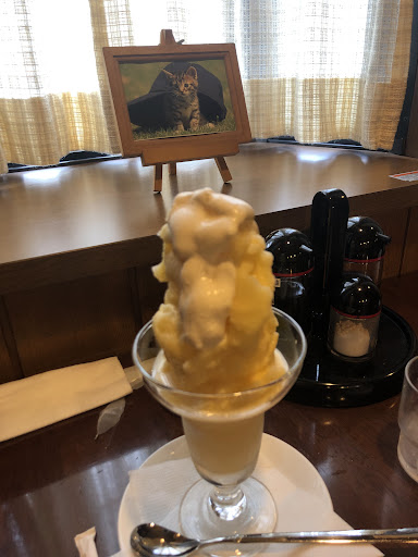 Read more小さな喫茶店で居心地良かったです。 お店自体は古くありませんが昔ながらの喫茶店のメニューが揃っています。 ミルクセーキの種類も色々あり、メロンセーキやチョコセーキもありました。 一個ずつ作るので時間はかかりますが、パフェのようにボリューム満点のクリームがかかったミルクセーキ(550円)は飲む価値ありの美味しさです。 あと喫煙可です。 我々は土曜日に行きました。毎日かは分かりませんがその日は夜中1時までやっていると言っていました。 店員さんの対応も物腰柔らかでとてもよかったです。 お水を頻繁に入れてくれるのに、飲み終わったミルクセーキのコップを下げない所も居心地のいいポイントでした。 あと猫と犬と音楽が好きな店長さんのようです。 となりのパーキング...