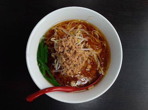 大牟田市右京町、国道号線沿いにある中国料理店です。コンビニ程度の大きさの店舗で、店内はテーブル席と小上がり席が用意されています。駐車場は敷地内にそれなりに確保されています。さてラーメンですが、今回はラーメンセットの中から「台湾ラーメン」と「天津飯」を頂きました。あっさり甘めの醤油ベースのスープですが、殆ど辛さは感じられない程のピリ辛でした。麺はこの手のお店では珍しく、細麺ストレートタイプが使用されています。具は挽き肉、もやし、ニラといった構成の一杯で、それなりにボリュームも感じられます。その他ラーメンのバリエーションは「醤油ラーメン」「豚骨ラーメン」「塩ラーメン」等、それなりの種類が用意されています。大盛り対応なし、替え玉制なしとなっています(いずれもメニュー表記なし)。その他メニューは例によって莫大な種類が扱われており、やはり全容の把握は困難です。因みにこちらの「天津飯」は、歯応えのある玉子に塩味が先行する醤油系の餡が特徴でした。また食後にはコーヒーのサービスもあります。 こちらのお店は、2015年頃に開業した中国料理店です。例によって例の如く、本場中国人による居抜き入店型台湾料理店のようです。居抜き前の店舗は中古車販売店「ラビット」大牟田店だったかと思います。他の同系店と比べてセットメニュー等の設定が若干高価格なのが気になりましたが、全般的に安くてボリュームもあり提供も早いお店なので...