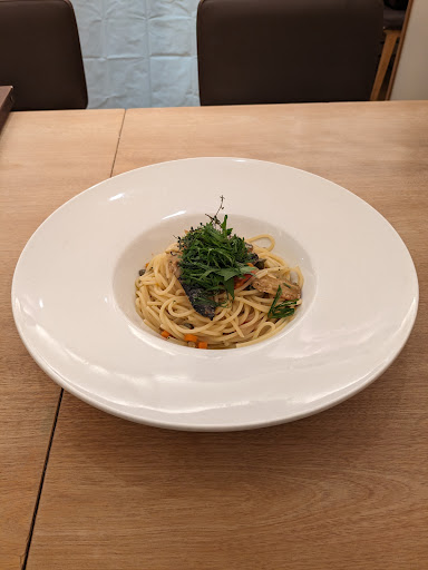 ネットで偶然見かけた、「絶望スパゲティ」というネーミングに惹かれて、実物を食べに行ってきました。 金曜日の18時頃に訪問。客は私以外に3組。 早速「絶望スパゲティ」のレギュラーを青じそのトッピングで注文。 セットにしようか迷ったんですが、今日はお昼ご飯がちょい遅めだったんでやめときました。 お冷を飲みつつ暫し待つ。 お冷は仄かにレモンの香りがして美味しい。 10分ほどで料理が到着。 いやもうこれ、ビジュアルの時点で美味しそう。 イワシも全く臭みがなくて美味しい。 麺はもう少し固めの方が好みかな。 予想通り、青じそと相性良いですね。トッピング頼んで正解だわ。 半分ほど食べたところで、卓上のチリーズ(青唐辛子)を掛けて味変。これも旨い。 器にソースが結構残ってたので、バゲットを頼まなかった事を後悔。これバゲットに付けて食べたら旨かっただろうなぁ…と思いつつ...