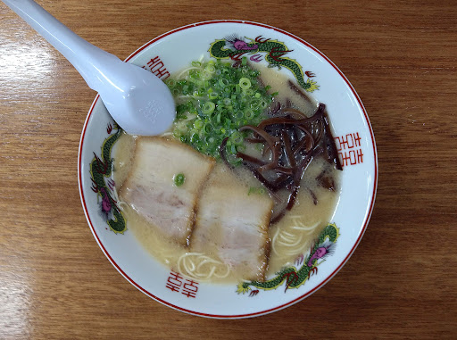 Read more大牟田市本町、福岡県道18号線上の「大正町1丁目」交差点から東進してすぐの場所にあるラーメン屋です。飲み屋街の一角にあるお店で、21時オープンの夜専門店です。店内は意外と広めで、カウンター席とテーブル席が用意されています。専用駐車場はありませんが、すぐ近くに有料駐車場があります。食券制です。さて「ラーメン」ですが、甘くてこってりとした味わいの久留米系とんこつスープとなっており、博多系の風味も感じられますね。麺は中細ストレート麺が使用されています。具はチャーシュー、キクラゲ、ネギといった構成の一杯です。飲み屋街という場所の所為か、一杯680円(2203年夏現在)と少々高めな価格設定です。大盛り対応あり、替え玉制ありとなっています。ラーメンのバリエーションは「チャーシューメン」のみ、サイドメニューは「ご飯」「おにぎり」「チャータレ丼」といった飯物と「ギョーザ」「おつまみチャーシュー」程度と少なめな展開です。セットメニューの類いもありません。今回はお供に「ギョーザ」も頂きましたが、ボリュームもあり食感も良好でした。他のクチコミにもありましたが、しっかりとした味わいでタレなしで行けます。 こちらのお店は、2022年3月に開業した新規店です。北九州市八幡西区の「ラーメン力」で修行後に開業されているようです。かつて「まるせんラーメン」本店があった場所ですね。開業当時は昼間の営業もあったようですが、現在は夜のみの営業となっています。酔客相手でなくとも十分やって行けそうなのですがね。焼きめし系の開発とともに昼間の...
