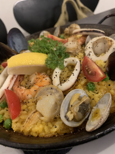 魚介類のパエリア ご飯は柔らかめでお焦げはないタイプのパエリアでしたが、味がgood😋✨ おーいしぃ╰(´︶`)╯♡