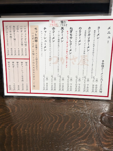 Read moreラーメンの麺は、久留米の銘店大砲ラーメンから仕入れている、とのことですが、(製造所は、小郡市の店舗に併設されている。)26番手位の細麺で、スープも、粉気が強く似ている部分もあるように、感じました。ただ、各店秘伝のラーメンダレの違いは大きく、スープの旨味は、大砲には、全く及ばないレベルだと思いました。メニューはシンプルで、熊本風味の黒、辛味の赤といった味のバリエーションに、御飯、餃子を加えた内容になっていました。単品620円の価格は、近隣他店と比較して、割高感があり、客数が上がりにくいのでは、と心配になりました。一方、ホールやキッチンは、きれいに磨き上げられており、スタッフの服装身だしなみも十分なレベルにあるように感じました。キャパは、19名ですが、コロナの対策で、カウンター席を間引いて営業されておられました。店規模の割りに、駐車場は確保されており、車での立ち寄りに、あまり不安は...