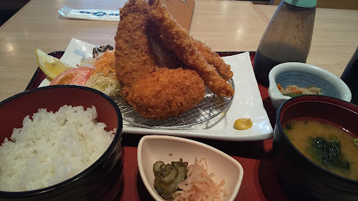 まぁ海鮮なんか原価も廃棄もあるだろうから仕方ないのかなぁ。 今日は大好物のアジフライが入ったミックス フライ定食? 旨いんだけど惜しいなぁ。1037円。 上品さなら某トンカツチェーンの方が上だし。金網、油切りなんだろうけど邪魔だなぁ。 クリームコロッケもなかなかなんだけどクリームが流れ落ちるんだよ。 。小鉢は旨い。 足らないものはなんだろうとかんがえてみる。 イカリングフライとカキフライだ。 あと2~300円高くていいからスペシャルミックスフライ定食なんてどうだろか? ご飯も大盛りとは思え...