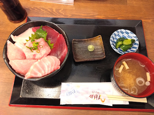 何回もリピート中の明神丸さん。今回は1600円のマグロざんまい丼。大トロ中赤身と生マグロはやっぱり美味い。値段以上の味と量で超満足です。