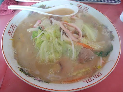 Read moreお昼時は、人が多いと思い、裏をかいて、昼前に訪問‼️えっ⁉️扉から、妻ヨージ、チッチってしながら、リーマンが、ゾロゾロ出てきた。。。マジか。。。外は、28度で、正直、熱々系は、そげん居ないかと勝手に想像していた。。。セーフ。。2️⃣テーブル空いていた(^◇^;)ピリ辛チャンポンを食べた。野菜、多い。。。いらん事だけど、こんなに具材入れて、儲かるのか⁉️キャベツ、にんじん、玉ねぎ、ネギ、蒲鉾、ちくわ、キクラゲ、もやし、お肉と。。。で、スープも、タップリあるから、どんなにすすっても、安心。。。隣に人が来て、餃子と、チャーシューおにぎりを、えっ⁉️これ、メッチャ美味しいんだけどぉ〜とか言って食べてる。。。ここの焼き豚おにぎりは、チャンポンに、負けずに劣らず、かなり美味い😋私は知っている‼️しかし、チャンポンが、良心的過ぎで、タップリだから、もう、入らない。。。www😂次は、チャーシューチャンポンを食べる‼️チャーシュー、やばい。。。ずっと食べれる!(◎_◎;)♾️で、マスターの、ポリシーで、一度にまとめ作りしないからこそ、美味しいのだろうな。。。と、感じました。テーブル席から、眺めていたら、オーダーの度、炎が🔥❤️🔥ブハッと上がるのは貼り紙の通りだ‼️いや。美味しかったです。おご馳走様でした。又食べに行きまーす🖐️あーーーーーーーーーチャーシューおにぎりが恋しい...
