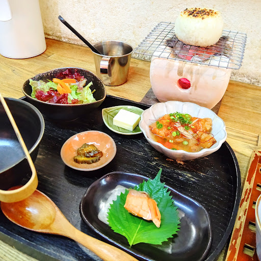 Read more初めて行きました。 焼きおにぎりのお茶漬けランチをいただきました。 色々選べるランチメニューが楽しく、何度か行って色々試したいと思わされました。 私は小食なのでおにぎりの大きさが選べるのも嬉しいポイントでした。満腹になりすぎない程度に丁度よく完食させていただけました。 全体的に美味しかったですが、個人的には小鉢の白身魚のあんかけが特にお気に入りです。とても美味しかったです。 サラダは野菜の下に茶そばが入っているサラダなのですがドレッシングが甘いので、個人的な希望としては甘くないドレッシングも選べるともっと嬉しかったなと思います。 メニューに書いてあるとおり、焼きおにぎりはそのままで何口か食べてからお茶にすると2度美味しいです。 私は更にお茶漬けにして何口か食べてからオプショントッピングのバターを入れて味変したので3度美味しかったです。お茶漬けにバターは初めての経験でしたが香りと塩気で更に美味しくなったのでバターを頼んでみてよかったです。 味変もできるし個人的にバターおすすめです。
