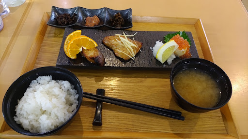 Lovely seafood cafe/restaurant situated next to Onjuku beach. Friendly service, and the chef agreed to make a special vegetarian lunch of stir fry vegetables and rice for my companion. A small bottle of local sake to accompany the lunch. I had fresh and delicious sushi with some grilled eel and mackerel. It has a well-stocked shop selling local seafood, baked goods, sake and fruit jams. Well worth stopping here for lunch, dinner or just to browse the shop. David...