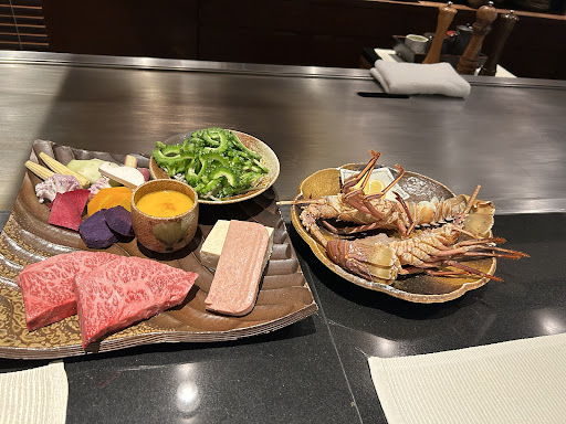 Read more沖縄ジアッタテラス隣接 ゴルフ場のクラブハウス内にある鉄板焼き リゾートの鉄板焼きは雰囲気もよく、そして味も最高でした!肉が美味しいのは勿論ですが、鮑の食感と味がたまりませんでした!夏には夕日が海に沈む絶景...