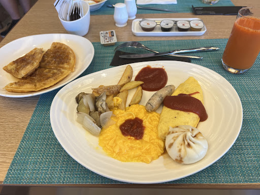 This breakfast place is lovely. They have a lot of options to pick from which is why I think it’s quite popular. The place also has a holiday vibe and is quite noisy (in a buzzing/fun way). They have an omelet station which is amazing (the eggs are so fluffy)! They also have a waffle or pancake station (depending on the day) where they make fresh hotcakes in front of you. They also have an Okinawan section with taco rice and Okinawan soba. There is also a danish pastry section. They also have western food and Asian food. Overall a great...
