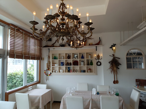 We found this restaurant on our wanderings and took the opportunity to book in for dinner. We were not disappointed! We chose the 2,500 set which included three of the days appetizers, soup or pasta, your choice of two mains (we had the Okinawan pork) and dessert. The food was delicious and beautifully presented - the soup came out on Noritaki dinnerware! It was definitely good value for money. We sat out on their terrace and enjoyed the sunset. We had a lovely bottle of Faiverley 'Clos Rochette' which we have not seen in restaurants before. Very nice! We also enjoyed a bottle of Nebbiollo. (Great glass ware!) The chef and sous chef were very friendly. They have an English menu and the sous chef also speaks English. Definitely worth seeking out if you are in the area. (They were doing lunch...