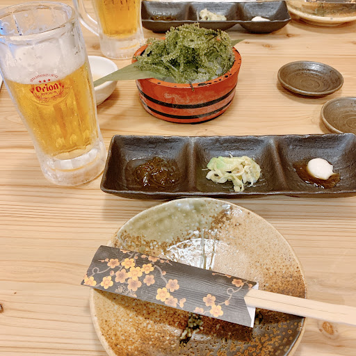 This place was right across from the Sheraton Sunmarina, and since we arrived late in the evening we were hoping something close to the hotel would still be open. Despite it only having 3.6 stars we decided to try it, and I’m so glad we did. It was late on Fri night and we were seated right away. There is a 500¥pp table fee, but there is a sign and the staff tells you that so no big deal. Since it’s an izakaya we ordered a ton of food. Everything was delicious, and the drinks were fantastic. Some of the things we tried were: -tuna sashimi -eggplant and tofu -Goya chanpuru -wagyu sashimi -pork dumplings -yakiniku wagyu grilled on a small table side grill(which was amazing