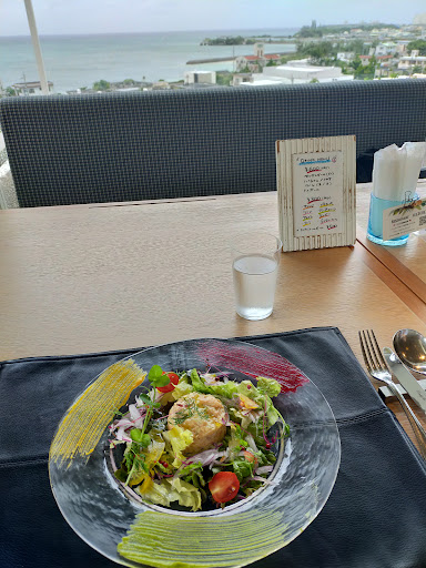 レストランは、奥の壁が全面ガラス張りなので、全ての席で海の景色を楽しめますが、オススメは、ガラス面に近い列の席。壁側に近くなると、どうしても、他のお客様越しの海になるので、予約する際には窓際の席をリザーブしてもらった方がよいかも??
