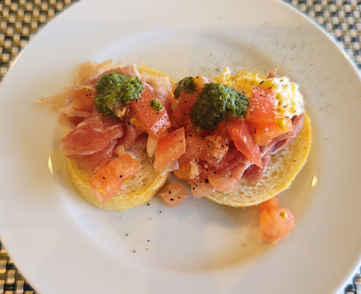 最初、美味しそうなバケットだったので、薄く切ったのからめっちゃぶっとく切ってトーストし、それに具材を載せていたのですが、具材が素晴らしくて(nobuta好みなだけですけど・・・笑)、何度も何度もおかわりしちゃいました。 結果、メインが出てきた時には、メインよりもピンチョスを食べたい❗❗❗❗という気持ちが強く、2つのメインは妻が食べてくれましたね(笑) 妻曰く、メインはハッシュドビーフが良かったそうです。 nobuta的には、ピンチョスで幸せになれるホテルランチとして記憶に残りそうです...