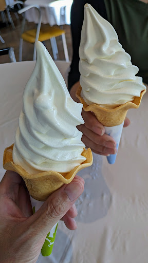 Read more2種のソフトクリームが有ります。「六呂師高原のソフトクリーム(¥450)」と「時計台のソフトクリーム(¥370)」で価格差は80円。前者はミルク感が高く、こちらの牧場の「生乳」を使ってるらしいです。一方後者は若干あっさりしていて福井県内の牛乳を使用しながらも「生乳」ではないそうです。かませ犬ですか?これはもう一択でしょう!。食べ比べてはないですが、六呂師高原ソフトは牛乳の味がしっかりとする間違いのない美味しさでした。ただし高原とは言え標高はそれ程でもないので酷く暑かったですね〜。牛が居ないなぁと思ったら、狭い木陰にひとかたまりに犇めいてました。あ!まさに「犇...