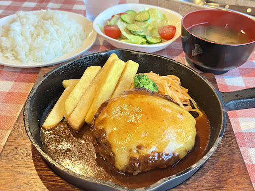 Read more福島に仕事の時に良く行きます。 いつもハンバーグランチ(デミグラス)を頼みます! ランチで990円で安いですし、ドリンクも付きます。 周りのお店の中では美味しいハンバーグだと思います。 スープだけが謎にお味噌汁です。