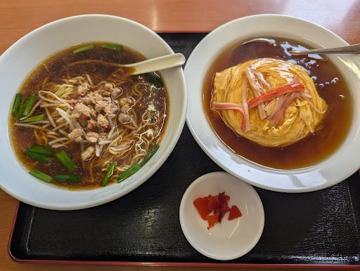 台湾ラーメンと天津飯セットは、台湾ラーメンは辛くないタイプでシンプルだけど美味しい。 天津飯はかなり美味しい。 卵のドレープがすごく綺麗で餡もたっぷり。 天津飯おすすめです。