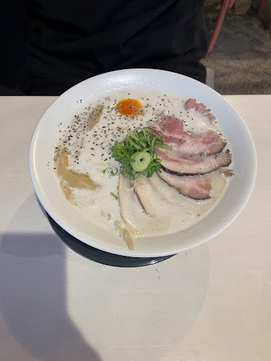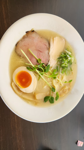 彩り豊かで食欲のそそるラーメン屋さん🍜iqcafe&diningさんへ伺いました✨ずっとランチがメインのお店かな?と思ってたのですが、2年前からラーメンをメインで営業されているみたいです!ここのバジル塩ラーメンを食べてみたくて伺いました🌿🧂.∘ディナーでもランチと同じメニューだそうで、ディナーになるとこれにプラスしてコース料理やイタリアンが食べられます🇮🇹🤍パスタやおつまみもありましたが、パスタは少々お時間かかるとのこと!ラーメンは結構早くでてきました!私はバジル塩ラーメン、恋人は季節限定のクリーミー鶏白湯ラーメン大盛りチャーシュートッピングとライス大🍚まず着丼して彩り豊かでびっくり👀🩷私のバジル塩ラーメンにはライム、レアチャーシュー、白いささみ?もも?むね?肉のチャーシュー(これもジューシーで美味しい)いい半熟具合の味玉🥚ニンニクチップスとベビーコーンがのってました✨🌽見た目だけでも充分美味しいですが、味もなかなか絶品(´༥`)!バジルが効いていて食欲が増します✨塩ラーメンなのでサッパリしていて、つるつるいけちゃいます!麺は平麺と細麺が選べますが、平麺にしました!ペタンコというわけでもなくグネグネうねっていてスープに絡む美味しい麺🍜スープもレンゲで掬ってたくさんのんじゃいました!!不思議なくらい美味しい♡ですが、私が感動したのは恋人の頼んだクリーミー鶏白湯の方!!これはほんとに美味しくて、沢山貰っちゃいました🥹生クリーム?が入っているのか、滑らかで鶏白湯とマッチしていてするする行けちゃいます!ここにお店の方が用意してくださったおろしニンニクを入れてパンチのある味にしてみたり、ブラックペッパーを入れて味変してスープがどんどん無くなっちゃいました!ご飯とも相性抜群✨🍚ご飯を浸しておじやにして食べました😋メンマも美味しかったようで、大きくて柔らかい穂先メンマがドンッと入ってました!感動するレベルで美味しかったのでまた絶対行きます💦👍🏻次はまぜそばが食べたいねって話してました✨次も楽しみです!ご馳...
