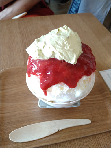 いちごピスタチオ氷 ★★★★☆ ふわサク氷にしっとりお手製濃厚フレッシュ苺ソース ピスタチオクリームのもったり感が氷の冷たさを和らがせる食感美味し˚✩* 持ち帰れるカップに木のスプーンも食べやすい。 おしぼりあると尚良し。