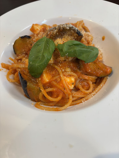 次にいただいた「茄子とモッツァレラのトマトパスタ」は、茄子がとてもジューシーで、フレッシュなトマトと絶妙にマッチ。ソースが本当に美味しく、満足度の高いパスタでした。ファミレスのトマト系パスタにはタバスコが付いてくることが多いですが、本場のパスタはタバスコをかけずに味わうのが一般的かもしれませんね。
