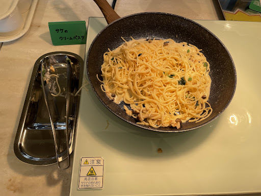 平日の12時過ぎに来店。並ぶことなく席に着くことができました。テーブルも25卓ほどあり天井は高く、外を眺めながら食事を楽しめる広々とした空間でした。最近、値上がりしたようで大人1人1320円の🚫90分制限 PayPay可。 ★サラダ🥗1種類:ドレッシングは、3種類(生姜・ゴマ・オニオン) ★マリネ(野菜とハム)・ピクルス(きゅうり、大根、人参、パプリカ) ★ パン🍞:5種類(ディッシュパン1/2カット・ミニクロワッサン・ベーコンチーズパン・レーズンパン・チョコパン) ★肉1種類:豚ロース味噌焼き ★パスタ🍝1種類:野菜(あさり、キャベツ、しめじ、パプリカ、カイワレ)...