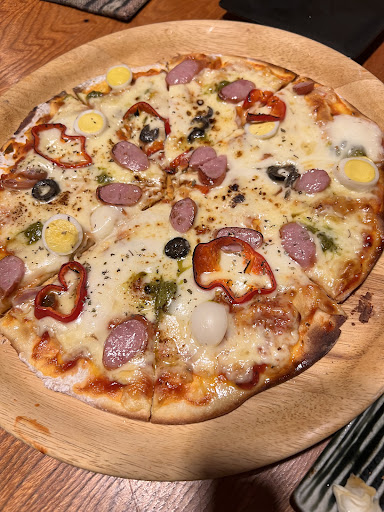 色々なアジア料理が出てきて、中でもナシゴレンは卵をかき混ぜ周りにあるえびせんに乗せて食べたけどご飯の味とえびせんの風味がとっても合ってて美味しかったです!!!! 他にも餃子はもちもち、ピザのチーズはとろーりとしてて生地はさっくさくで大好きな焼き具合でした♡