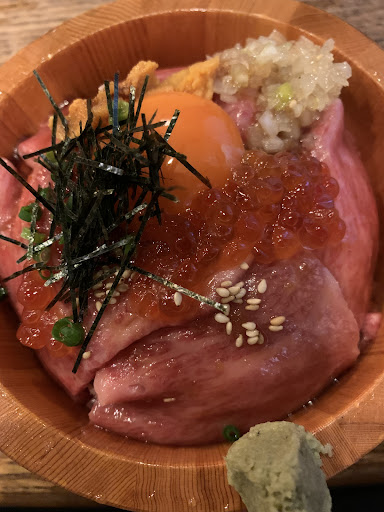 お肉屋さん関係の焼肉屋さんなのでとてもお肉の質がいい! 8時まではどのメニューもお肉半額で提供 佐賀牛のいいお肉を使ってます! 今回食べた握りもお口でとろけるお肉 ☆牛トロ握り(3貫)一貫+300円 ☆牛トロ丼1780円 牛トロ握りはお肉がとろける。 あったかいシャリと程よくマッチして美味しい。