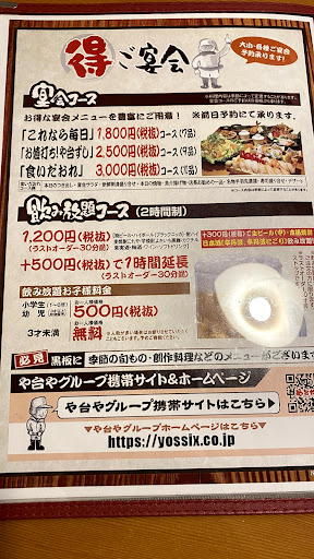 金曜日に行きました。 予約はネットで当日でしたが、席は掘りごたつ席で家族3人で充分大丈夫でした。 19時までは、飲み物【アルコール含む】が半額になるので、平日だけたったかも… めちゃくちゃお徳に呑めました(^-^)v 食べ物も、メニュー豊富たったし、【屋台寿司】なので焼き鳥などはありませんが、お刺身も綺麗でとても美味しかったです😁✨✨ 接客も、よその居酒屋と違っておじちゃん達がとても気持ちのいい接客をされていて、初めて利用しましたが、また来たいネ‼️って話して帰ってきました。 家族連れで行くなら予約した方が、席をキチンと用意してもらえるので予約がお薦めですね👍