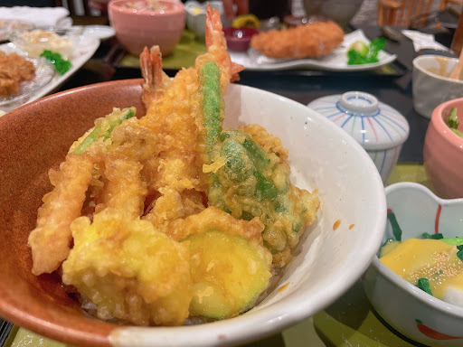 店舗は清潔で、奥半分から半地下みたいになってる不思議な造り。 家族3人で天ぷら定食、ステーキ丼、お造り定食みたいな3食を注文しました。 天ぷらサクサク、ステーキジューシー、お造り新鮮で、私達家族は満足でした。
