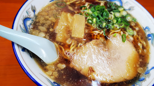 Read more▼典型的な尾道ラーメン 平打ち麺ではなく、ゆるやかなウエーブがかかった麺。醤油系のスープには、しっかりした豚の背脂が浮かんでいます。トッピングはチャーシューにメンマとネギ、典型的な尾道ラーメンが味わえます。スープはしょっぱさが強く、好き嫌いが分かれるかも・・・。