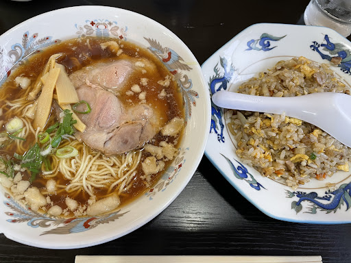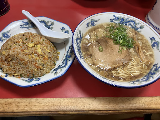 Read more観光で因島を訪れた際、こちらのラーメン専門店「萬来軒」さんでお昼ご飯をいただきました。 伺ったのは日曜日の12時ぐらいで、休日とはいえ一番お忙しい時間帯だと思われ、お店の前にある8台ほどが停められる駐車場はほぼ満車状態でした。 車のナンバーを見ると「和泉」など関西から来られている方も多いようでした。 我々は大人5名、幼児1名のグループだったため、2席あるお座敷が空くのを待っていたのですが、15~20分ほど待ったかと思います。 今回私が注文したのは、ラーメンと半チャーハンがセットになった「ラーメン定食(税込950円)」。ラーメンは醤油ベースで粗めの背油がトッピングされた、いわゆる尾道ラーメンで、具材はチャーシュー、メンマ、刻みネギとシンプルですが、スープは比較的濃いめのコクがあるタイプです。 厨房の料理人の方がカンコロン・カンコロン…と超リズミカルに中華鍋をあおって作られる半チャーハンはご飯がパラパラでお味もしっかりしていて美味しかったです。 ただ、座った席にもよるのかも知れませんが、今回は南側の窓際のお座敷で、窓の外から豚骨スープを煮出した時のようなニオイが漂ってきていて、それがラーメンの味を邪魔しているようで、私としてはイマイチ美味しくいただくことが出来ませんでした。 最初はラーメンのニオイかとも思って、スープ、麺、チャーシュー、メンマなどを鼻に近づけて確認しましたがどれも普通の匂いでしたので、やっぱり外からのニオイで間違いないと思います。 これが無ければもっと美味しくいただけたのかも…と考えると残念ですが、この辺りの感じ方は人それぞれなので、あくまでも個人の感想ということで捉えてください。 お店の左奥にはサイン色紙もたくさん飾ってあって、因島出身のバンド「ポルノグラフィティー」の新藤晴一さん(?)の...