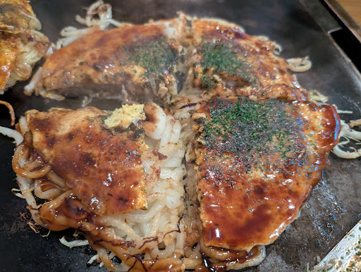 Even though the portion looks small, it is actually quite filling with the noodles inside. For only around 1200 yen, you can order an okonomiyaki out of all the options they offer. You can also add toppings for 100 yen each to customise the okonomiyaki to your own liking. I feel like the original toppings of the Mari special were not quite abundant but they were still tasty and satisfying. I also really enjoyed how the okonomiyaki had the perfect amount of sauce for me. Unlike a lot of other restaurants that drown their okonomiyaki in sauce, the preparation here has a nice layer of sauce instead. And if you feel like it is not enough, they have a bottle of their sauce on the side so you can add as much as you want. This subtle difference allows the flavours from the other ingredients to shine as well instead of having the sauce overwhelming all the other flavours in the okonomiyaki. The atmosphere was quite cosy. I really enjoyed the interior decor and the more traditional seats. Finally, the service was quite welcoming and polite but it took quite a bit of time before our food was served. Please note that there are no english menus so be prepared if you decide to visit...