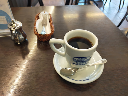 店内はカウンター席にテーブル席、隔離されたようなプライベート室もあり雰囲気はいいお店。 落ち着いた薄暗い席もあれば明るい席もあり、お客さんが少ない時間帯だと人数に関係なく好きな席に座れます。 ここのブレンド珈琲は濃いめ。炭焼き珈琲みたい...