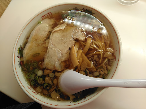 去年(2019年)惜しまれつつ閉店した尾道ラーメンの名店、朱華園(朱さん)、その朱さんの創業者の奥さんが、娘さんと共に復活させたお店、従来の朱華園から南側へ100Mほど移動した海沿いにあります 店内はカウンターが15席、テーブルが16席ぐらいかな、仕切りは無いですね、メニューはシンプルで、中華そば、叉焼麺、ワンタン麺、ワンタン、焼きそばのみで、アルコール類、ご飯類、餃子(持ち帰りは有るみたい)は一切ありません、販売機で叉焼麺を選ぶと札が発行されるので店員さんに渡します、因みに大盛は無いみたいです、尾道では古くからあるお店はラーメンではなく中華そばと表記します そば登場で一口食す、美味しいのだが、アッサリでコクも余り無くちょっと平板なスープ、日曜の1時過ぎなので最初のスープが無くなっちゃったのかな、かつての朱さんは、お客に約束した営業時間はラーメン(中華そば)を提供するのは当たり前と云う昔気質の商売を守っていました、でも、その分、時間帯による味のバラツキがありました、そのスタイルを新店でも続けるなら、ベストなラーメンを求めるには早い時間に行くべきだったかな、ただ、背脂多めの注文はOKみたいなので、コッテリ目にも出来ます 朱さんの隠れ人気メニューだった、少しオイリーな焼きそばが復活してるのはいいね(2020年12月)