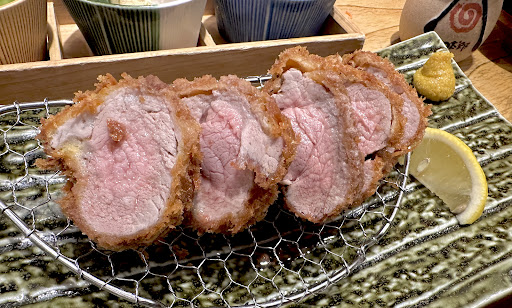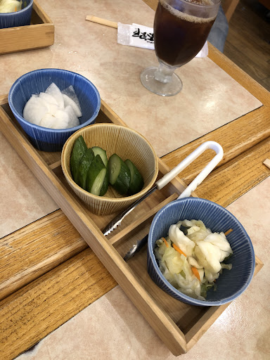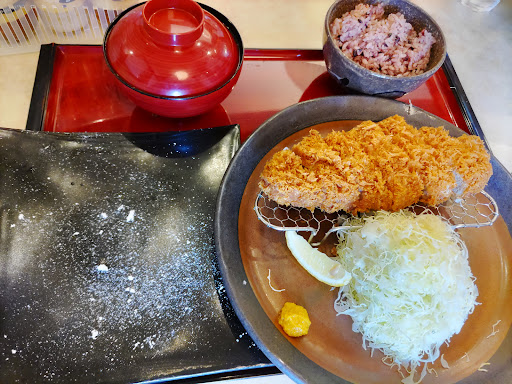 Read moreお盆で個人店がやっているか分からないため、ばんどう太郎系列というこちらに来てみました。 開店早々でしたが続々と車が入ってきます。 さすが接客で有名なばんどう太郎系列、すごく丁寧な方がカウンター席に案内してくれました。 つくば王様豚に季節のアジフライにエビフライ、果ては釜めしに味噌煮込みうどんまで、とんかつ店風ファミリーレストランというところ。 おそらくここ邑楽店だけであろう、上州豚極ヒレかつ定食をお願いしました。 早々にお冷やとお茶と3種の漬物、そしてゴマ入りすり鉢が運ばれてきます。ゴマをすってそこにソースを入れる式かな? 準備万端整いましたが、お盆で大混雑のためか料理はなかなか出てこない‥30分少々で揃いました。 待った甲斐のある見事なヒレかつ。館林の有名店のようなミディアムレアに揚がっています。ソース以外についてきた塩・ワサビ・ステーキソースのどれも合う。特にステーキソースはご飯泥棒ですね。どうやらご飯キャベツだけでなく漬物までおかわりOKなようで、食べ盛りの人がいるご家族には嬉しいでしょう。お盆に混むわけだ。 もう少し落ち着いた時期につくば王様のロース...