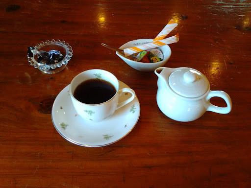 来店→ストレート珈琲を頼みトイレへ→席に戻ると→他の淹れる待ちのお客様もいないのに、淹れてない→『焙煎の豆の仕分けがあるから後で淹れる』と言われ(そんな急ぎの焙煎のお客様でもなかった。焙煎の豆を渡したあと少しゆっくりしていた)奥のキッチンへ長いこと消えてった(10分)→私のことは後回しにされ、他に珈琲を淹れるお客様は居ないのになぜか焙煎の豆の選別を先にしてかなり待たされてから淹れられる