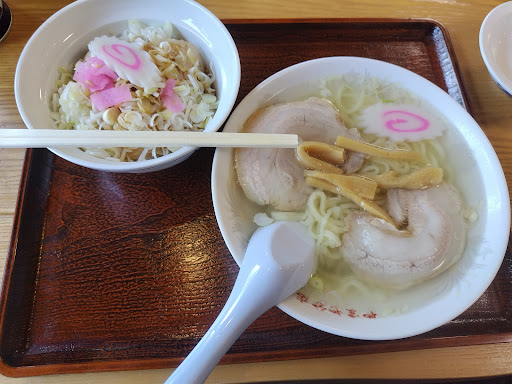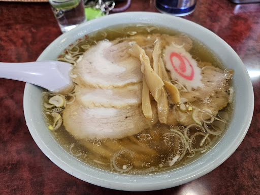 テーブル席は埋まっていましたが、カウンターが空いており待たず通されました。 セルフサービスの水を汲み、決めていたAランチ(ラーメン+チャーハン)を塩ラーメンにて注文。 10分程で着丼しました、 かなり透明感のあるスープは鶏ガラ・豚肉・香味野菜等から取られた優しい味わい。