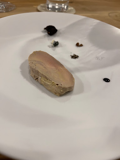 Read moreディナーに訪問。 ミシュランビブグルマン。 北浜駅からすぐの場所にある帝国ホテル大阪出身のシェフが営むフレンチ。 カウンター+テーブルの店内は、お洒落な雰囲気の空気でありながら、親しみやすいカジュアルさも。 ビストロノミーという言葉ピッタリの雰囲気で、デートに接待、ちょっとした晴れの日に使い勝手が良い。 この日の個人的な一番は「フォアグラのコンフィ」 コンフィしたフォアグラに、薬味として使うバルサミコ、塩、コショウ、ローストナッツ、ブルーチーズ、レーズンを添えた物。 非常にシンプルな料理だが、シンプルなだけにその美味さに驚かされた一品。 口の中でバターのようにとろけるフォアグラ。 フォアグラ特有の臭みやえぐみは一切なく、心地よい濃厚なフォアグラの旨味だけが残る。 添えられ6種類の薬味を使い分けることで、フォアグラの違った良さが現れ旨味の印象を変える。 美味い。 美味すぎる。 とりあえず3人前くらい食べたい笑! また、この日の「薄い豆の冷製ポタージュ」が美味かった。 薄い豆で作った冷製ポタージュに、猪のコンソメとブラッドオレンジのジュレを乗せた一品。 緑と赤のコントラストが見た目にも美しい。 薄い豆の爽やかな旨味に、猪の旨味と塩味がマッチする。 初めて体験する組み合わせだが、驚くほど相性がよく美味。 天才的な一品。 めちゃくちゃ美味い。 誕生日のお祝いだった為、正確な値段は分からないが、入り口の看板に 「LUNCH 2,500~、DINNER...