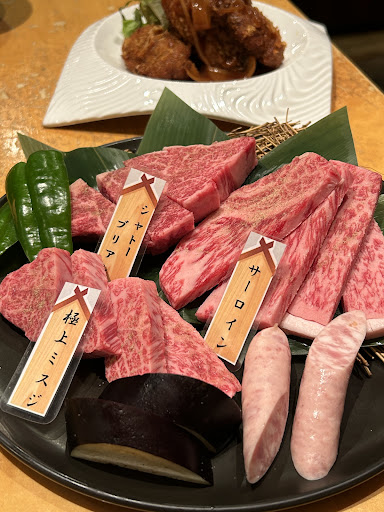 《今回注文したメニュー》 ◼︎特選盛り合わせ 4,378円(1日5食限定) ◼︎炙りユッケ 858円 ◼︎炙りレバー 715円 ◼︎大判ロース すき焼き風 1,188円 ◼︎大判赤身 すき焼き風 880円 ◼︎上ミノ 858円 ◼︎松坂牛すじポン 550円 ◼︎手ごねミンチカツ 1,045円 ◼︎手ごねハンバーグ 1,430円 ◼︎海老とブロッコリーのマヨネーズ炒め 968円 ◼︎石焼ガーリックライス 968円 ◼︎たまごスープ...