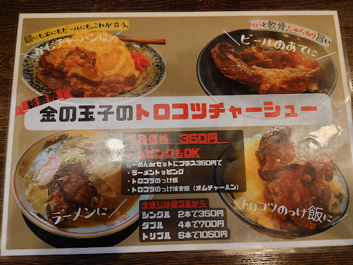 味噌ラーメンは予想とは違ったんですがスープも濃厚で美味しい。 味噌ラーメンなんで炒めた野菜とかが乗ってるのかなと思ったらシンプルなラーメンでした。 私は好きな味とタイプなんですが、 好き嫌いがもしかしてあるかもですね 例えるのは失礼かもしれませんが天下一品のこってりラーメンに辛味噌を少し混ぜたようなイメージです。 焼き飯の味付けはめっちゃ美味しかった。 あらかじめ焼き飯のご飯タネを作っておいて注文入ってから仕上げるタイプですが、多分タネの味付けはパーフェクトなんじゃないかなと思ったです。 最後の油と玉子とで仕上げる時に少しだけ味が薄まってしまってるかもとは思ったけど、ラーメン屋さんでの焼き飯では最高の味の部類やと思います。 唐揚げはカレーパウダーも別で渡して下さるのでお好みで素のままでもカレーパウダー掛けてでもいただけます。 ご飯にめっちゃ合う。 深江橋のごんべえってラーメン屋さんが40年位前にやりだしたのが始まりのような気がします。(ごんへえの唐揚げはチューリップです。) 餃子もひと口サイズで美味しいです。 豚骨ラーメンもスープはこってり豚骨で、麺は味噌も豚骨も同じです。 豚骨ラーメンも美味しかったですよ。 チャーシューもどちらも共通でしたがこれだけはちょっとスカスカしててイマイチでした。 全体的に価格も良心的に抑えてくれてて有難いです。 店員さんも店長さんも愛想よく、 どのお客さんも帰してくれて気持ち良かったです。 何を食べてもハズレが無さそうでまた...