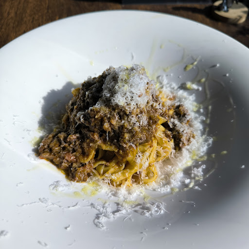★パスタ「ボロネーゼ」 たっぷりのイタリアワインで煮込まれた香味野菜の濃厚ソースに国産牛(スネ・バラ・ネック)の旨味がしっかりと入っていて美味いです。 モチロンパスタ(タリアテッレ)とも完璧にマッチしています。 これは美味いです!