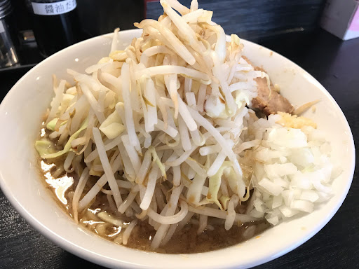 Read moreお店はJR塚本駅の高架下付近にあります。大通りに面しているわけではないので駅の利用者や近くの住民の方に愛されているお店なのだと思います。 席は凹型のカウンターのみで9席ぐらいありました。お店に入ってすぐに券売機があるのでまずは食券を購入して席が空いていればお店の方に指定された席に座り満席であれば外で待つように言われます。 券売機ですが金種が大きいものは使えないのですが更に新千円札や新五百円玉(発行から大分経つと思いますが)も使えないようです。なぜか二千円札は使えそうな感じでした。ただ店員さんに言えば気軽に両替に応じてもらえます。 驚いたのはノーマルのラーメンとはいえ価格設定が低くちょっと驚きました。直系二郎なんかも結構安いので好感が持てました。お水はセルフなので食券機横に設置してある給水器から自分で汲んで着席しカウンターに食券を置きます。 一般的な二郎系のお店と違い最初に無料トッピングの量を聞かれますのでラーメンが出てきてから慌てて言う必要はありません。マシ、マシマシ以外にちょいマシというのがあるようです。ただし野菜に関してはちょいマシが普通の店のマシぐらいあるのでマシはおそらくマシマシぐらいあると思われます。マシの時点でお店の方から量が多いけど大丈夫か聞かれている人がいました。その他のトッピングはそこまで激しくないと思われます。 初見でしたのでコールは野菜ちょいマシで他は標準で注文しました。 味ですが比較的大人しい感じでそんなにパンチは無いのですがニンニクがあることで良い感じになりました。麺はしっかりと茹でられているようでインスパイア系にあるようなゴワゴワ固麺でもなく個人的にこっちの方が好みです。豚はちょっと淡白な味付けかなと感じましたが食感は悪くなかったです。 あとラーメンとは関係ないですが...