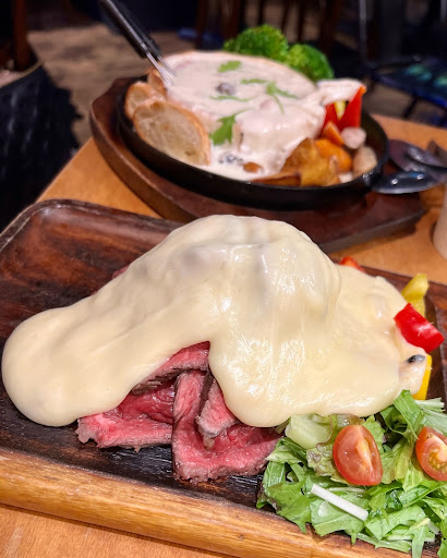 ) 塊肉の中に玉ねぎ隠れてたけど 肉に巻いて食べるとエンドレスっ( ◜¬◝ )♡ 肉っ!!!チーズっ!!!最強ですっ⸜( ᐛ )⸝ ◆シカゴピザのフォンジュ具材 *ソーセージ、バケット、ポテト、野菜付き チーズフォンデュできちゃうのぉ?! 野菜を追加オーダーできるので ブロッコリーとチョリソー追加したっ♡ ピザカッターでカットして トロトロチーズピザとしても食べれる( ..›ᴗ‹..) ◆真っ白なチーズステーキ カマンベールチーズ丸ごと1個ドーンっ!!ステーキに トロトロチーズがかかってる( ᵒ̴̶̷̤-ᵒ̴̶̷̤ ) チーズ×チーズ=呑みものっ!!!← で、で、でっ!!!そこにハチミツを たっぷりかけれちゃうっ(//´ ᗜ