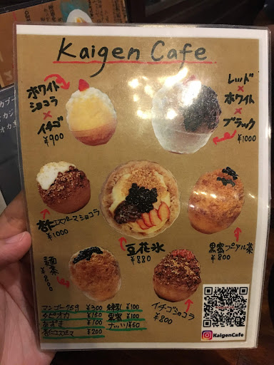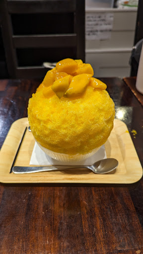 Wir sind hergekommen, um Kakigori zu essen. Es war eine halbe Stunde vor Ladenschluss, das Personal hat uns freundlicherweise noch eine letzte Bestellung aufgeben lassen. Positiv anzumerken ist definitiv die englische Übersetzung des Menüs (siehe Fotos). Bestellt haben wir letzten Endes ein Mango Kakigori und ein Yuzu Cider Getränk. Das Mango Eis sah sehr ansprechend aus und hatte eine schöne Form. Genau diese Form hatte allerdings auch den Nachteil, dass das Eis anfangs etwas schwierig zu essen war. Es wurde in Form gepresst und drohte oft zu den Seiten hin abzubrechen. Das Mango topping war lecker. Leider konnten wir den süßen Mango Geschmack irgendwann nicht mehr richtig wahrnehmen, weil das Mango Sirup auf dem Eis selbst zu süß war. Auch das Getränk war so süß, dass meine Begleitung es verdünnen musste. Das Kaffee scheint wirklich für Leute mit einem starken süssen...