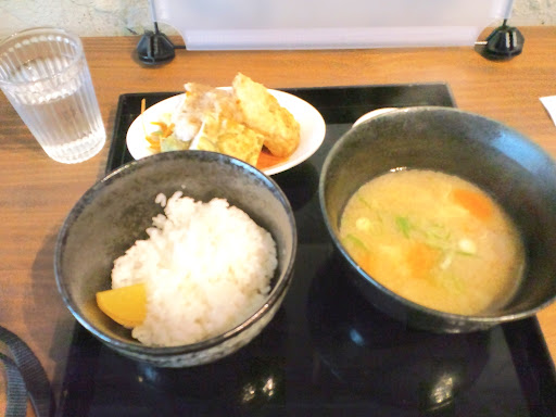 ミートローフの中にちゃんと野菜が入っていて、しかもよく味が付いてて。 加えて、大きめのお味噌汁には根菜はじめ野菜がゴロゴロ入ってて、優しい味が出ていてなかなかおいしいです。 この辺りで、この値段でこの内容を提供し...
