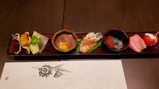 彩り鮮やかな八寸は、食べるのが勿体無い位の美しさ❗でも、食べ始めるとお箸が止まらない程の美味しさです😋🍴💕 次は椀物です。あーっ‼️このお出汁です。鰹の風味がフワッと香り、えもいわれぬ旨みが堪りませんな🎵 でっ⁉️この造里盛り合わせ、何なん💦今回のマグロは、島根県産の天然物だそうで、旨っっ‼️他のお造里も、ええ塩梅の熟成で流石はプロのお仕事です。 四万十産の天然鰻の蒲焼きに、アワビまで居てますやん。コソッとホタルイカまで⁉️ サプライズ、今回もやられました‼️2.5kg級の真鯛の塩焼きですっ‼️💦💦優しい塩味に仕立てた真鯛、皮はパリパリで身はホロホロ。前回に頂いたしゃぶしゃぶも美味でしたが、塩焼きも抜群でっす‼️ ええーっ😱💥シャトーブリアン🐮ってか⁉️ この部位って、本当に美味しいです。ニンニクチップとワサビで戴くと、自動的に黙食となってしまいます(笑) 〆は、料理長手打ちのお蕎麦です。蕎麦独特の食感と、鰹の効いた出汁とのコラボレーションが最高で、ズルズルっと完食🤭 手作りデザート🍰も、甘味と酸味のバランスがバッチグーの逸品でしたぁー⤴️