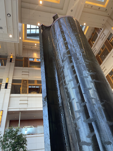 私がお伺いした日は、大雨の日でしたが💦ラウンジは24mの高い吹き抜けと、広い窓からは緑豊かな景色が広がっています。