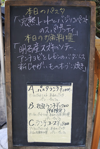 限定と見てしまうとそれを食べたくなってしまう単純な私。 しかも本日の魚料理は結構好きなスズキのソテーなので、これを食べると決心して店内へ。